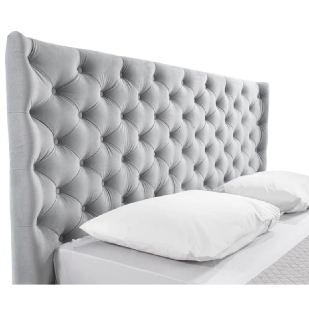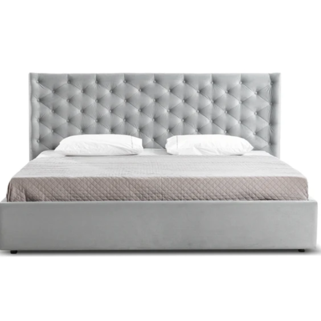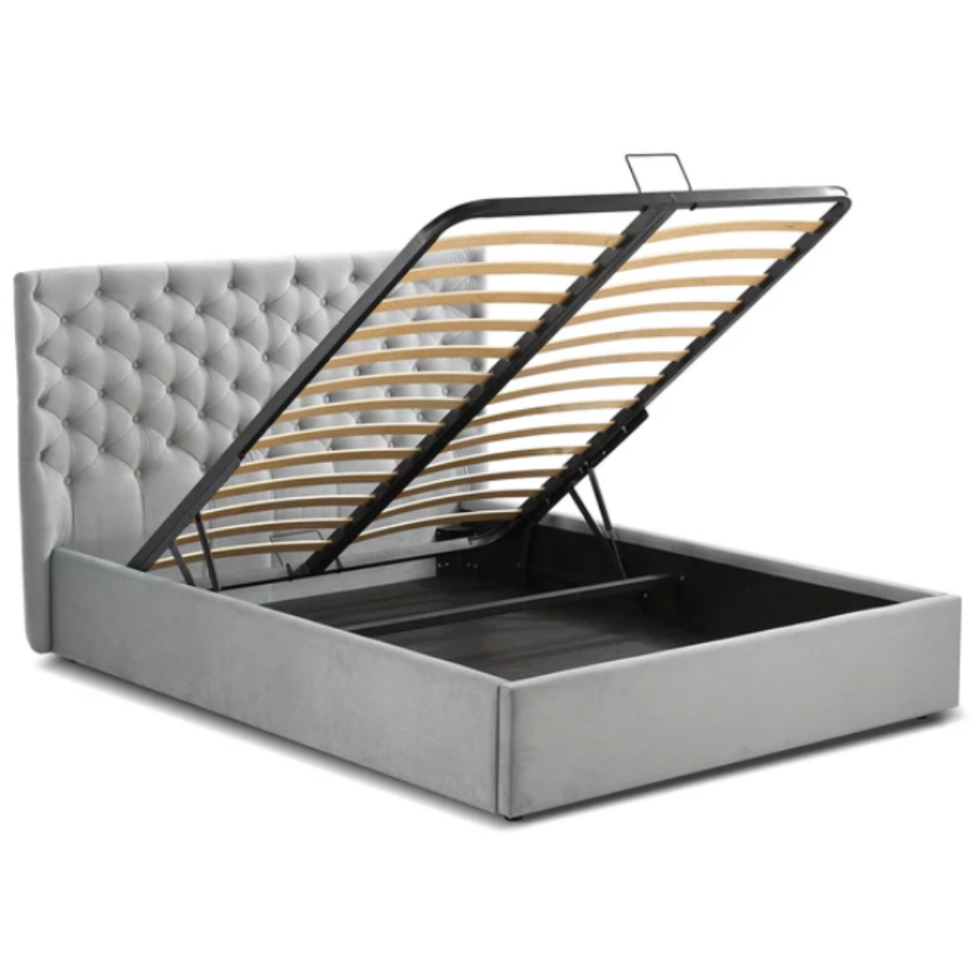 The Parker queen storage bed in gray velvet provides both versatile and modern style that can easily be integrated into any bedroom decor in your home.